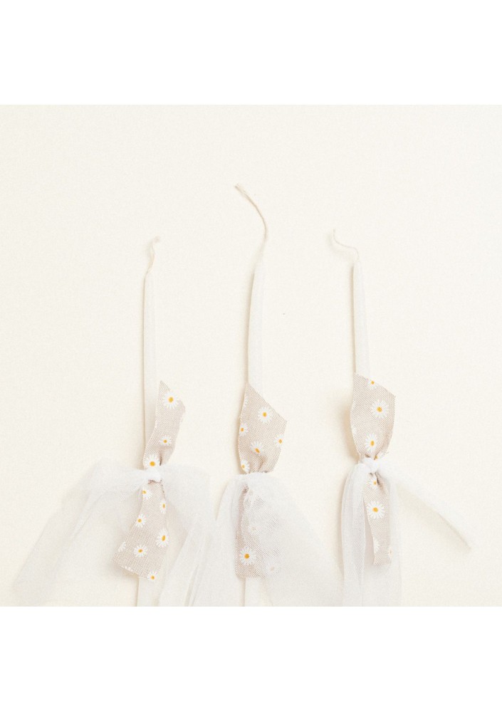 Σετ από 3 διακοσμημένα κεράκια κολυμβήθρας, ιδανικά για βάπτιση. Προσεγμένη χειροποίητη διακόσμηση με λεπτομέρειες που δίνουν κομψότητα και μοναδικότητα σε κάθε κερί.