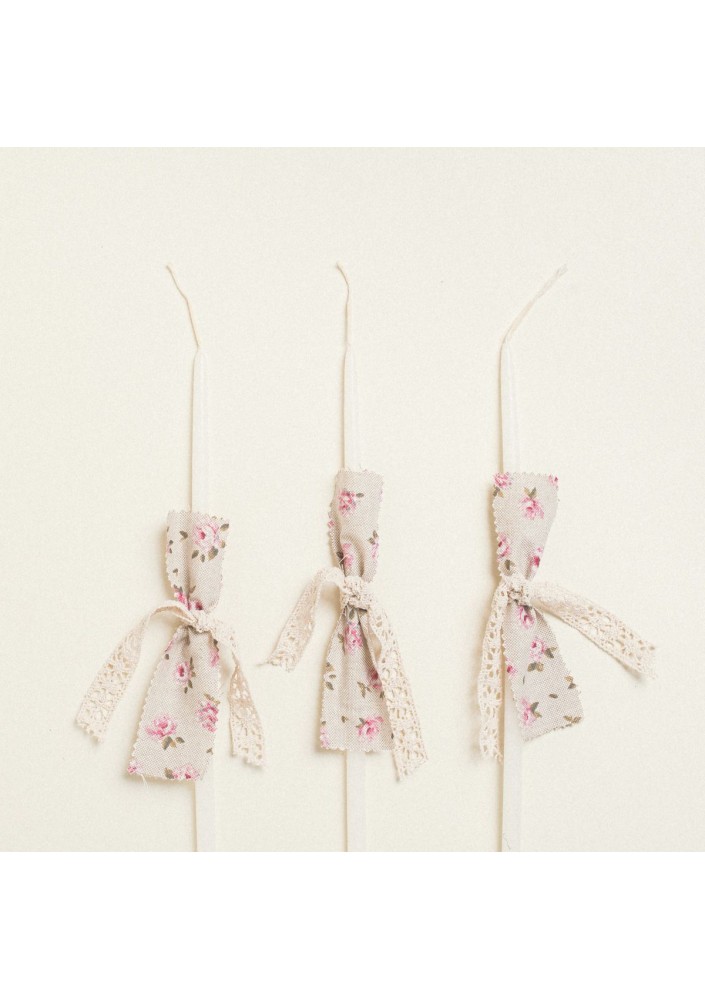 Σετ από 3 διακοσμημένα κεράκια κολυμβήθρας, ιδανικά για βάπτιση. Προσεγμένη χειροποίητη διακόσμηση με λεπτομέρειες που δίνουν κομψότητα και μοναδικότητα σε κάθε κερί.
