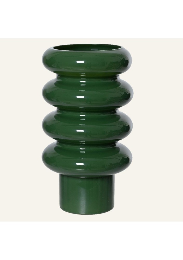 Βάζο με μοντέρνο και καλλιτεχνικό σχεδιασμό. Είναι κατασκευασμένο από γυαλί με γυαλιστερό φινίρισμα σε μια κομψή, βαθιά πράσινη απόχρωση.