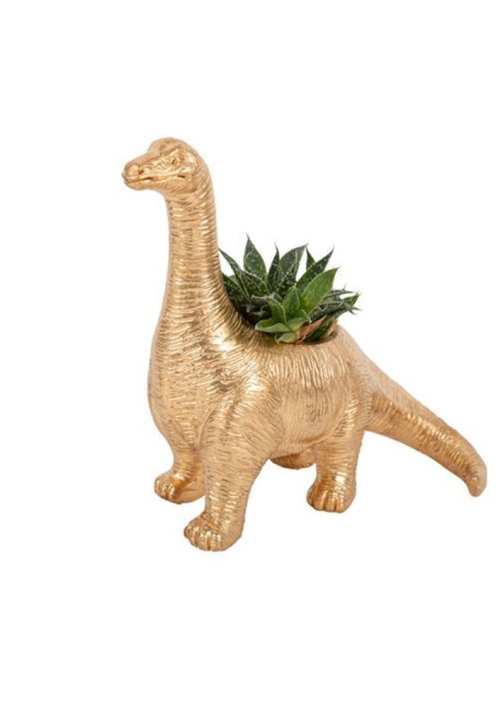 Δώστε μια ξεχωριστή πινελιά στη διακόσμησή σας με αυτό το εντυπωσιακό βάζο σε σχήμα βραχιόσαυρου. χρυσό φινίρισμα, αποτελεί ιδανική επιλογή για να τοποθετήσετε μικρά φυτά ή διακοσμητικά στοιχεία. Διαστάσεις: 16 x 18 x 6,5 cm. Το φυτό της φωτογραφίας δεν περιλαμβάνεται