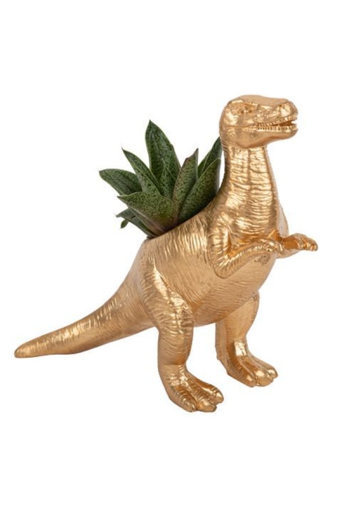 Προσθέστε μια τολμηρή πινελιά στη διακόσμησή σας με αυτό το εντυπωσιακό βάζο σε σχήμα Τυραννόσαυρου Ρεξ. Με χρυσό φινίρισμα και μοναδικό design, είναι ιδανικό για μικρά φυτά ή διακοσμητικά στοιχεία. Διαστάσεις: 16 x 18 x 6,5 cm. Το φυτό της φωτογραφίας δεν περιλαμβάνεται