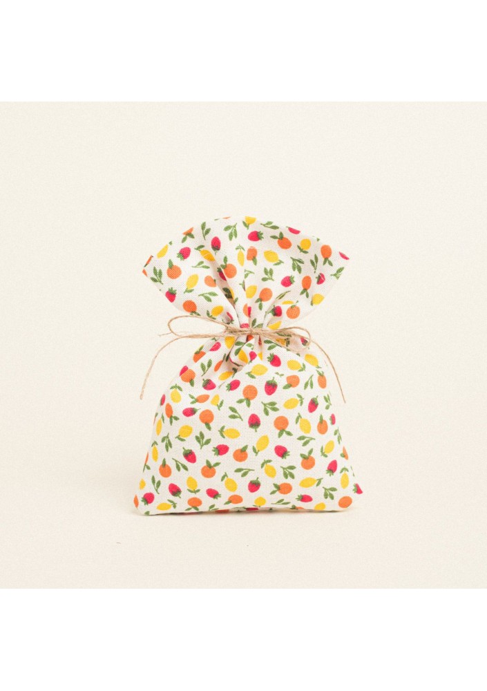 Υφασμάτινο πουγκί διαστάσεων 12 x 17 cm, με χαριτωμένο μοτίβο mini φρούτων σε mix αποχρώσεις. Κατασκευασμένο από υψηλής ποιότητας ύφασμα (80% βαμβάκι – 20% πολυέστερ), αποτελεί ιδανική επιλογή για μπομπονιέρες γάμου ή βάπτισης, καθώς και για ιδιαίτερες συσκευασίες κοσμημάτων, γουριών ή χειροποίητων ειδών.