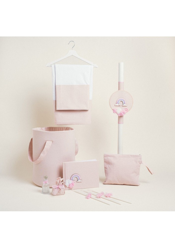 Ένα χαρούμενο και πολύχρωμο σετ βάπτισης με θέμα το ουράνιο τόξο, ιδανικό για μια βάπτιση γεμάτη χαρά, φως και ζωντάνια.