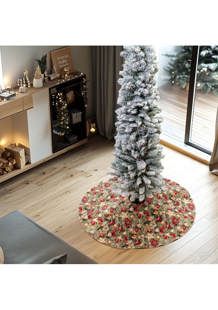 Ποδιά Χριστουγεννιάτικου Δέντρου 90cm Κομψή και πρακτική ποδιά για χριστουγεννιάτικο δέντρο, ιδανική για να καλύψει τη βάση του και να ολοκληρώσει τη γιορτινή διακόσμηση. Προσθέτει ζεστασιά και στυλ στον χώρο σας, ενώ προστατεύει το δάπεδο από πευκοβελόνες και διακοσμητικά υπολείμματα. Διάμετρος: 90cm